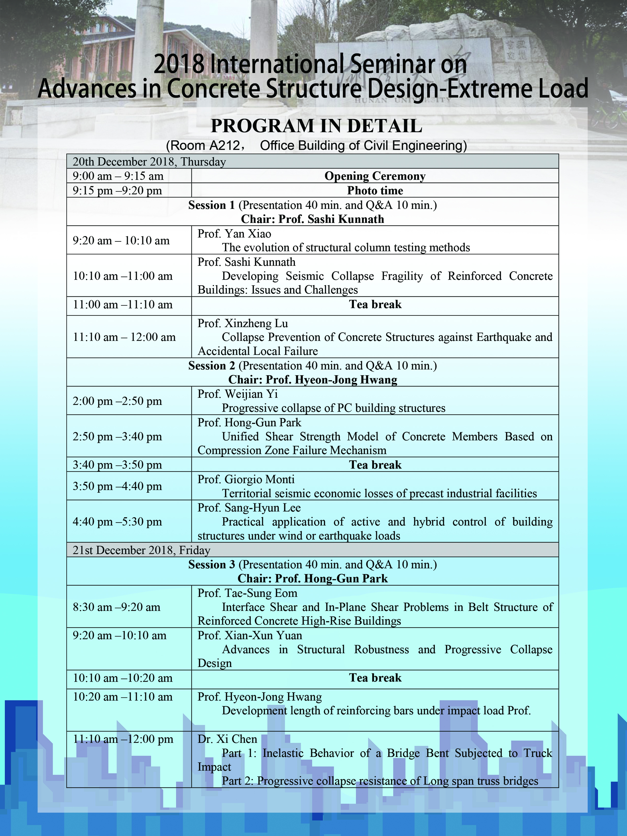 2018 International Seminar on Advances in Concrete Structure Design-Extreme Load (ACSD-EL 2018)系列学术报告