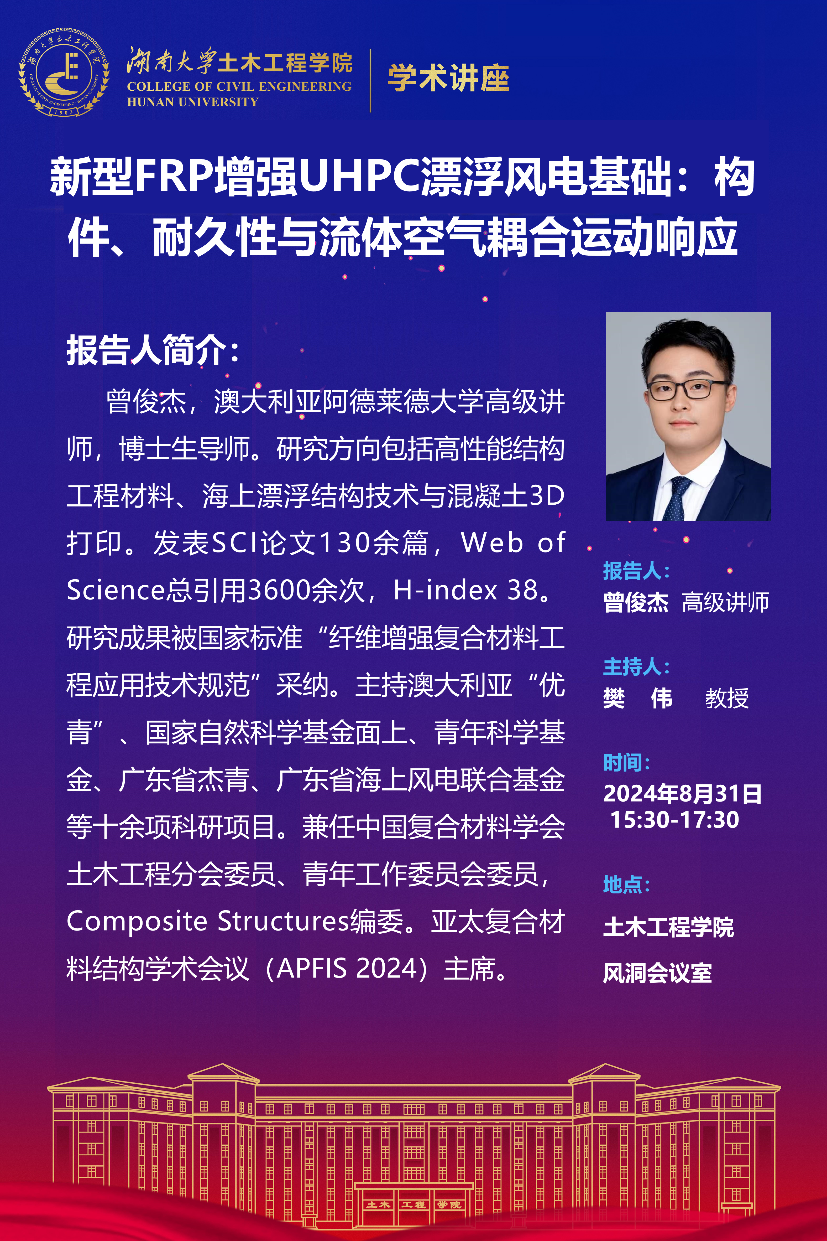 曾俊杰:新型FRP增强UHPC漂浮风电基础:构件、耐久性与流体空气耦合运动响应