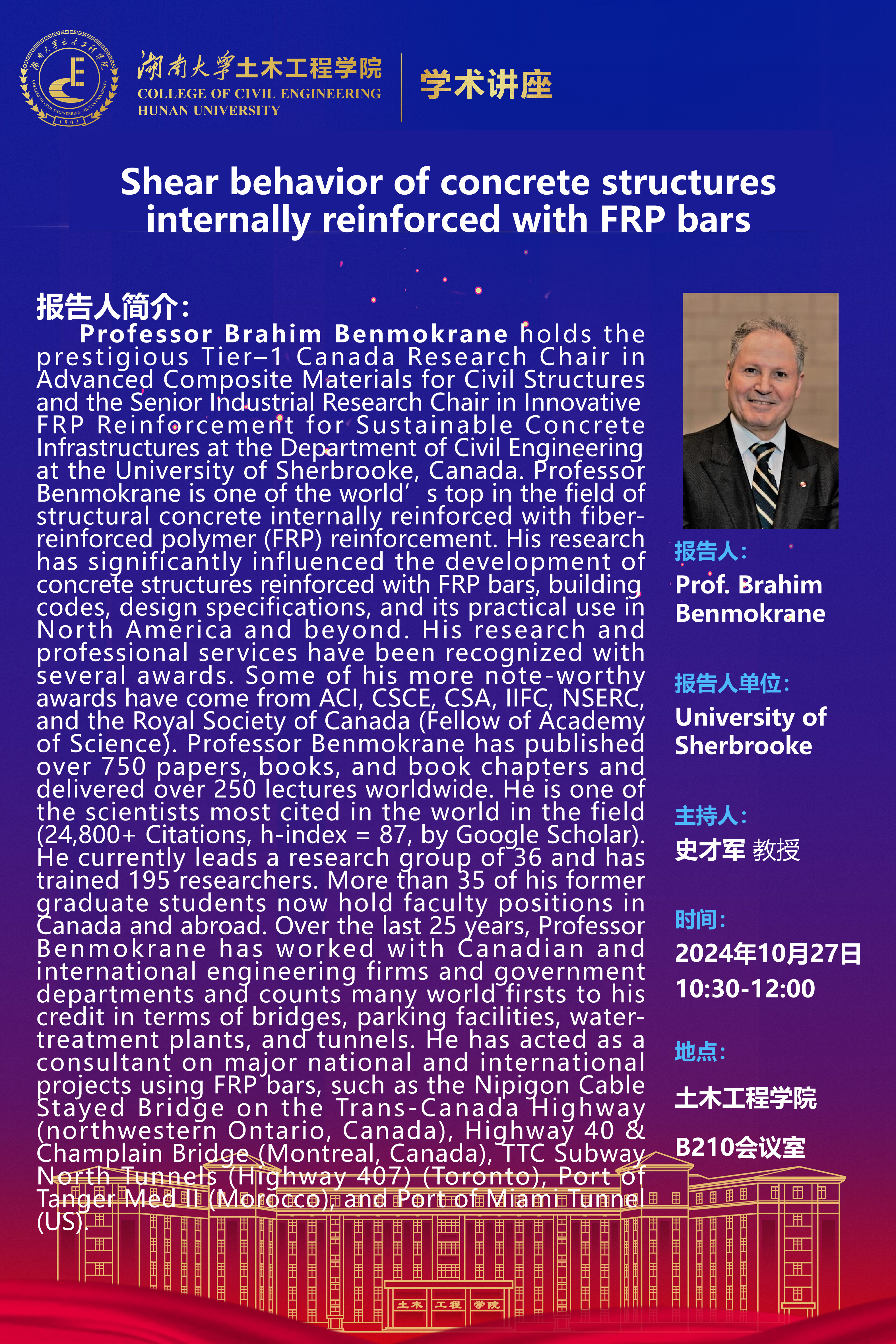 Brahim Benmokrane:Shear behavior of concrete structures internally reinforced with FRP bars