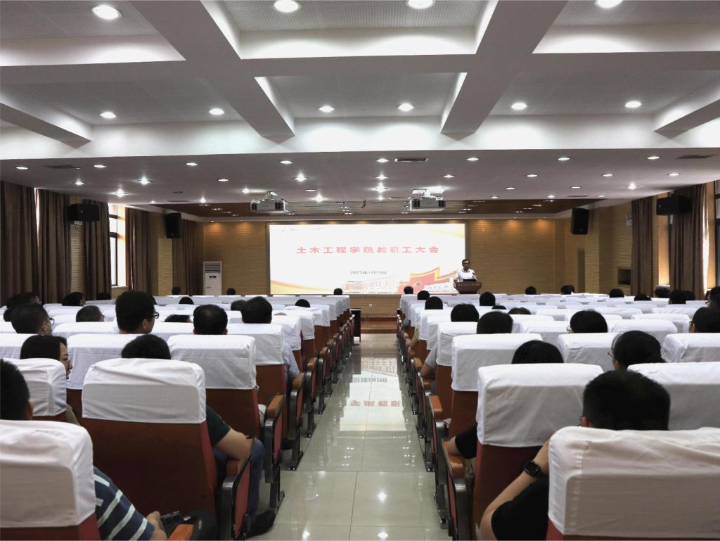院长邓露、党委书记彭晋卿、党政领导班子成员和全体教职工参加会议。会议由党委副书记、纪委书记周石庆主持。