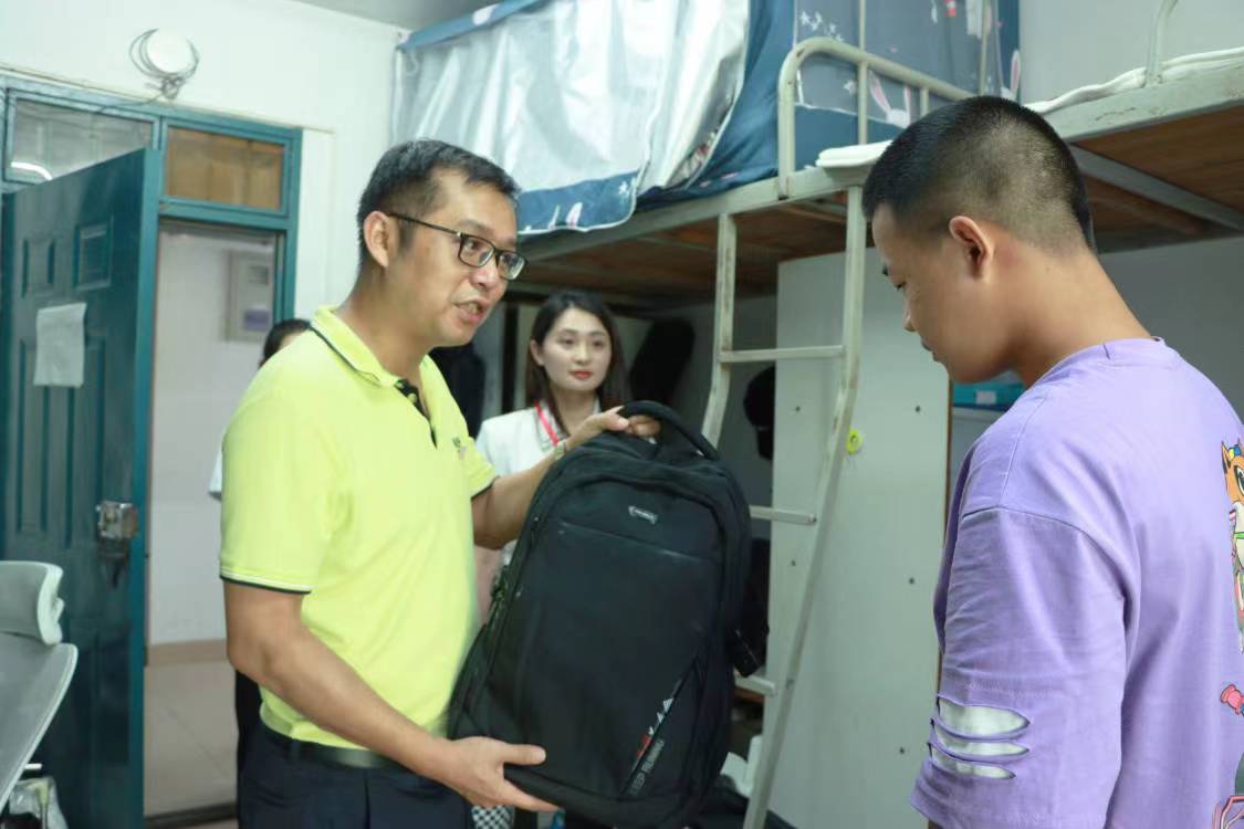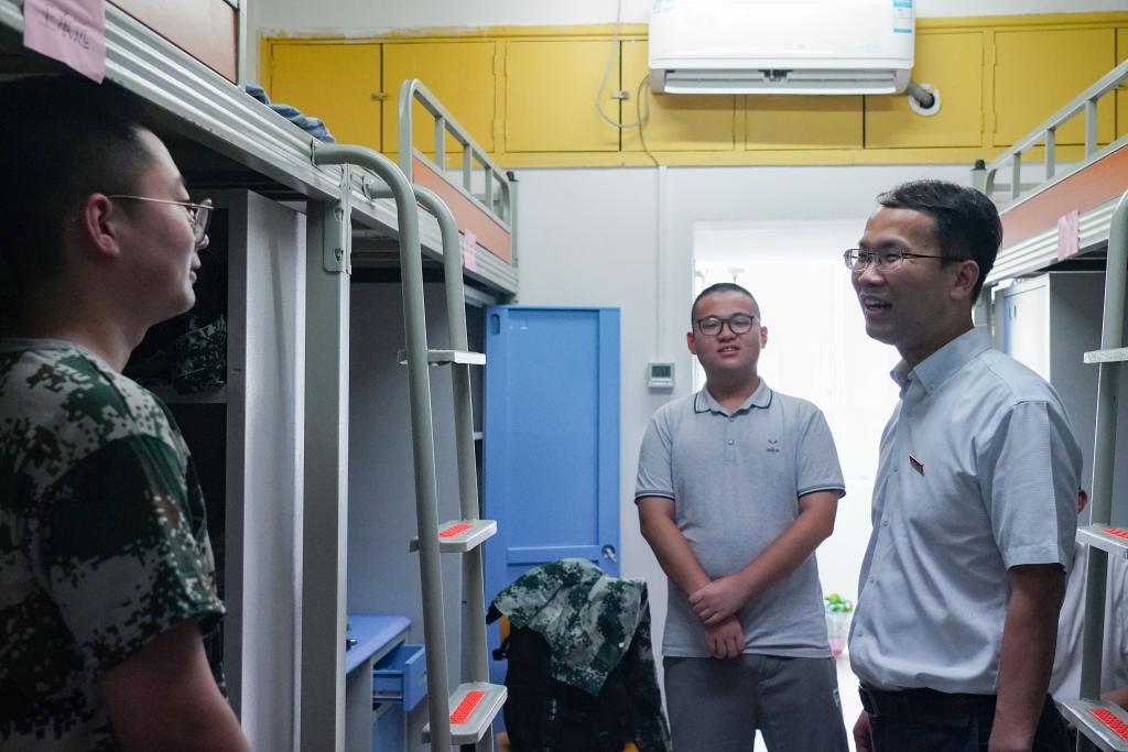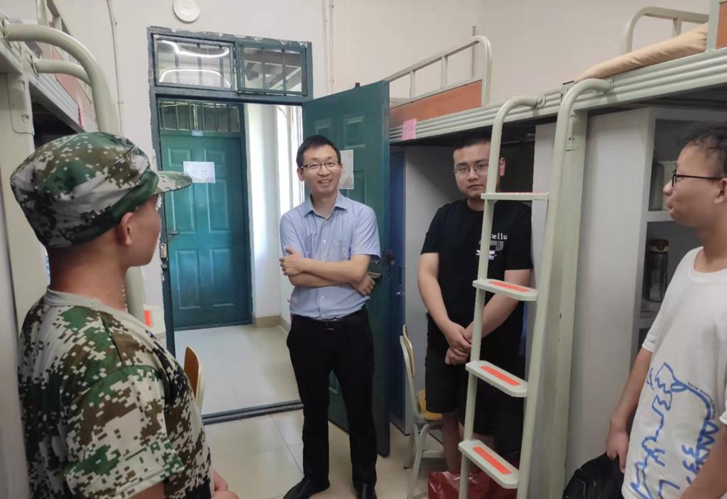 院长邓露,党委书记彭晋卿,党委副书记秦鹏、周石庆,副院长华旭刚、周云,院长助理张恒龙及学工办全体辅导员、团委老师前往德智园区新生宿舍看望慰问2022级新生。
