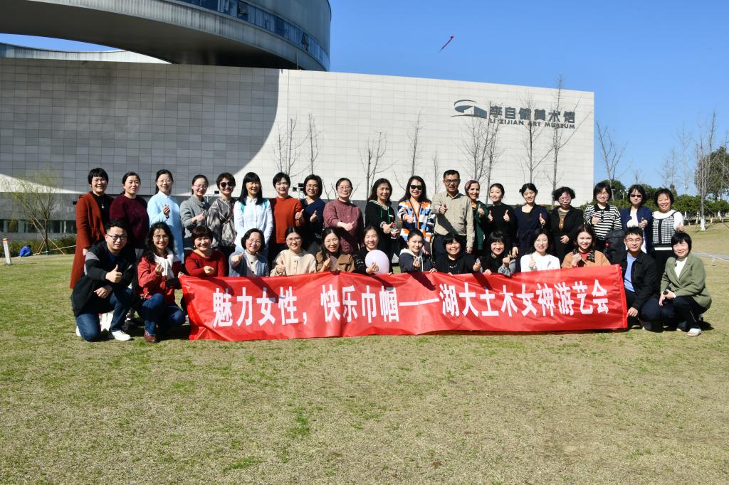 在趣味游戏环节,女教职工积极参与了掂乒乓球、踢毽子、踩报纸、运气球等游戏,共同愉悦身心、分享乐趣。随后,大家饶有兴致地前往李自健美术馆和谢子龙摄影艺术馆参观,在进行锻炼的同时感受艺术魅力。
