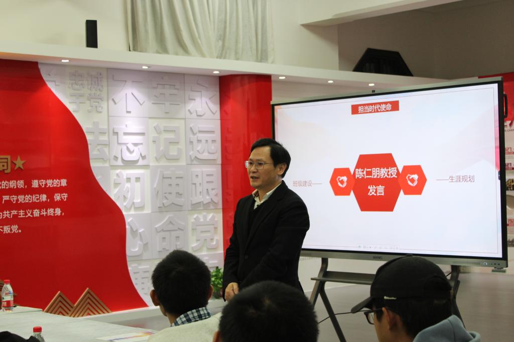 第二部分为“畅谈青春--担当时代使命”。邀请班级学生助理分享优秀班级建设经验,并通过视频方式展现高年级同学在班级建设方面的优良传统,之后全班同学在班委的引导下从班风、寝风、个人发展三个方面共同探讨班级建设思路。陈仁朋老师对班级建设、生涯规划进行指导,他指出土木工程专业绝不会走向没落,要坚持所选择的道路,不断提升自己,为社会为国家贡献自己的一份力量。陈仁朋老师的讲话为同学们的筑梦青春之路指明方向,使同学们大有拨云见日之感。