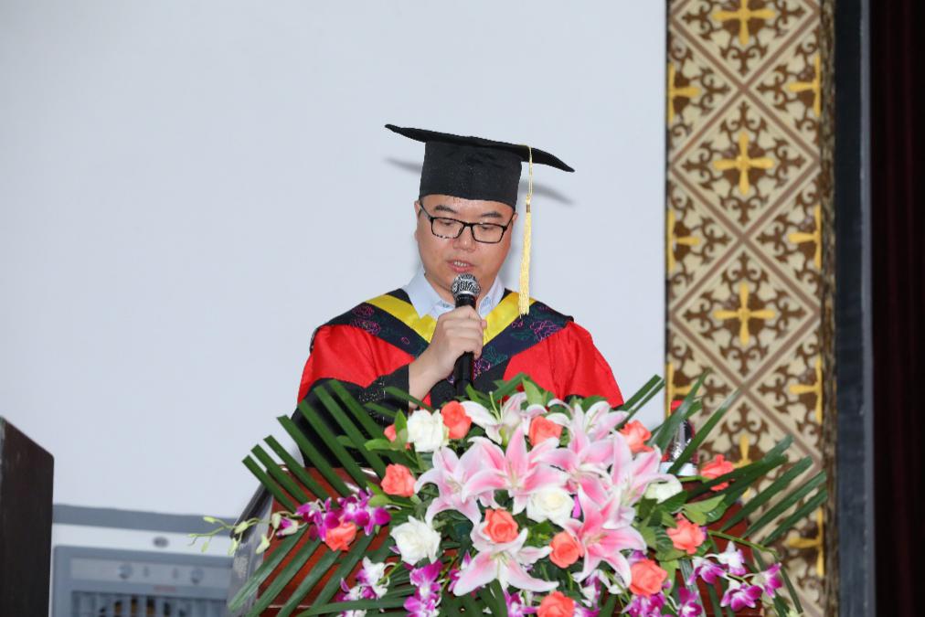 院长邓露在致辞中深切回望了2021届毕业生的精彩往事,他对毕业生提出三点期望:抓住机遇,勇担使命。在风雨考验中找到自己人生的目标使命,并为之不懈努力。坚持学习,认识自我。在不断学习的过程中发掘自己,明晰自身的志业和专长,在与世界的良性互动中把握自己,用坚定的信仰指引人生前进的方向。涵养情操,培育人格。用自己的涵养去真诚包容这个世界的不同,用自己所学回馈社会。