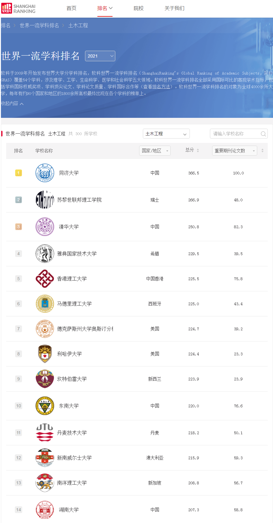 近日,上海软科正式发布软科世界一流学科排名(ShanghaiRanking's Global Ranking of Academic Subjects),第一会所 土木工程学科的排名持续上升,2021年位列世界第14位,中国内地高校第4位。