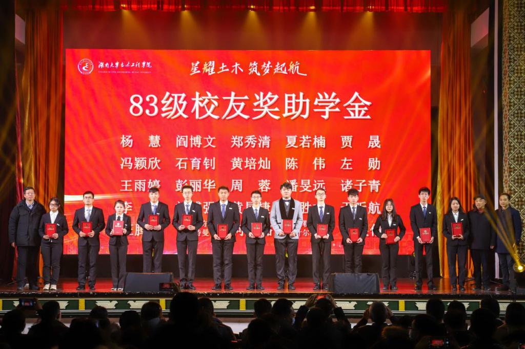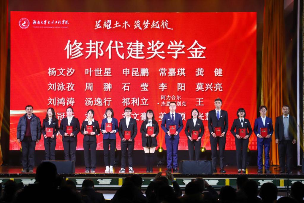 典礼上共表彰了165名优秀个人和11个优秀集体,设奖单位代表及校院领导老师为“肖春源奖助学金”、“皓芬奖学金”、“杨运传奖助学金”、“78级公路校友奖学金”、“83级校友奖助学金”、“九二级校友奖学金”、“廖宏奖学金”、“98级建筑工程专业校友奖助学金”、“工民建专业89级奖助学金”、“暖通基金”、“修邦代建奖学金”、“顺天综合奖学金”等12个奖项的获奖学生分别颁奖,并为本年度有突出表现的个人佩戴绶带。