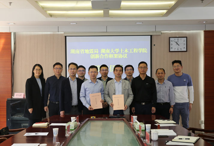 与湖南省地震局创新合作框架协议签署仪式在湖南省地震局举行。省地震局党组书记、局长燕为民主持仪式并致辞,院长邓露出席仪式并讲话。省地震局党组成员、局长助理王春华、土木第一会所