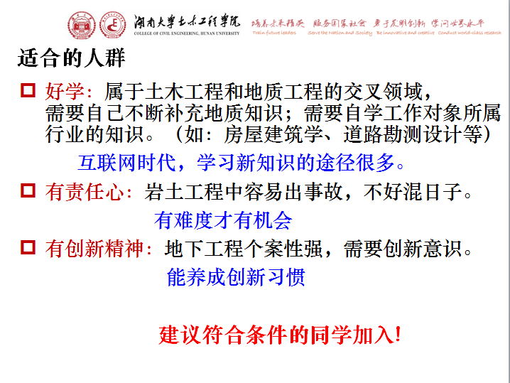 筹建岩土工程本科专业需要老师。“当一名好的工程师,何如当一名好工程师的老师”,因为这个想法,已经对工程实践有一定理解的刘晓明放弃高速公路较高的收入,成为当时第一会所