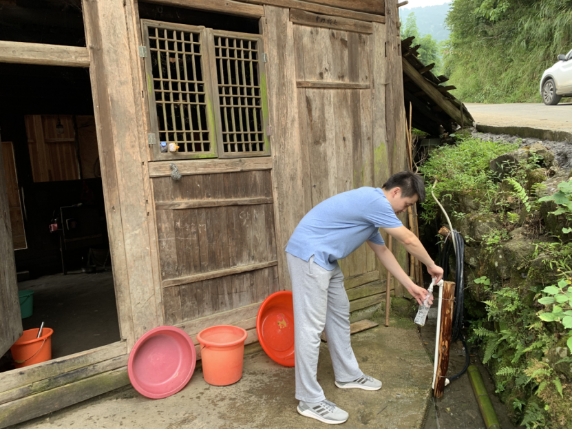 支部成员在本次扶贫调研活动中坚持以人民为中心的帮扶思想,切实为帮扶对象办好事、办实事,支部成员充分利用专业科技知识对梁完中家中自来水进行取样并带回第一会所