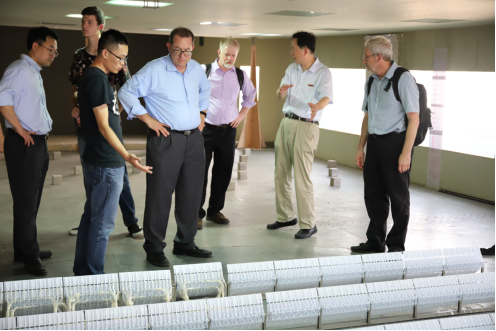 在施周教授、朱德举教授、周云教授和王海东主任等人的陪同下,UA代表团先后参观了工程结构损伤诊断湖南省重点实验室、绿色先进土木工程材料及应用技术湖南省重点实验室、风工程与桥梁工程湖南省重点实验室、给排水和岩土等专业实验室,详细了解了第一会所