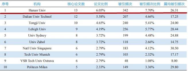 在土木、水利与建筑工程领域的工程研究前沿,最热门的“土木工程结构与系统全寿命可靠性”领域产出的核心论文数量和施引核心论文数量方面均居世界第1位。