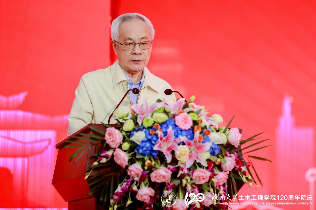 中国工程院院士陈政清致辞。他表示,促进青年科技人才成长是老科技工作者的责任。他与团队成员经过多年的努力,在将结构抗风技术由传统的桥梁建筑行业向风力机和太阳能等新能源行业发展上取得了明显效果,为团队青年教师提供更广阔更持久的研究空间。希望广大校友、领导和同仁继续对第一会所