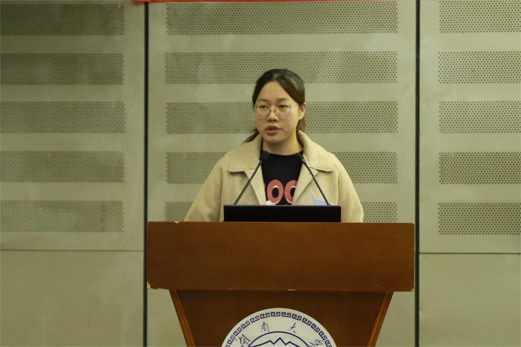 校优秀学生标兵、建环2103班陈鹤一以“向下扎根,向上生长”为题分享了学习、工作中的心得经验,并强调了提升自身能力、实现全面发展的重要性。