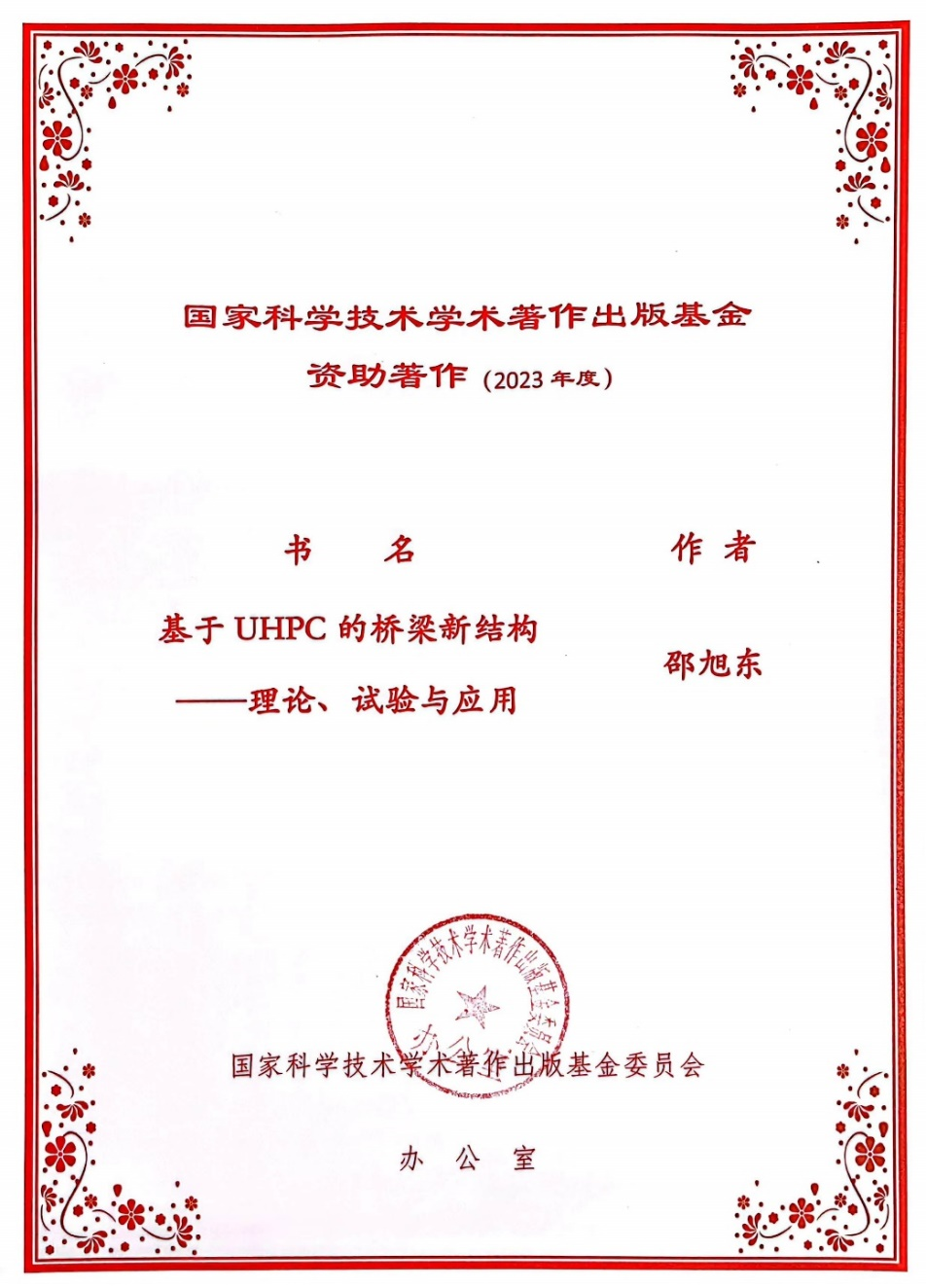 教授邵旭东等编著的《基于UHPC的桥梁新结构——理论、试验与应用》,获2023年度国家科学技术学术著作出版基金资助。