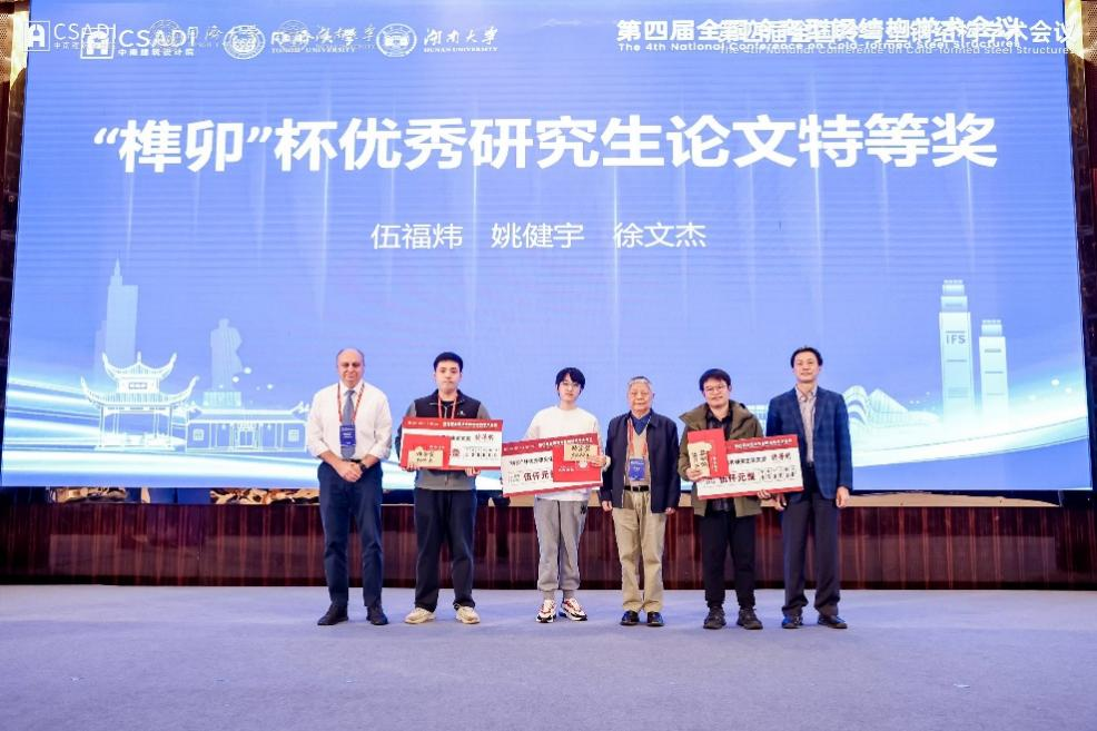 会议举行了由湖南榫卯建筑科技有限公司和安徽中科榫卯建工集团有限公司赞助的“榫卯”杯优秀研究生论文奖评选活动,共评选了43篇优秀论文,其中特等奖3名,一等奖5名,二等奖9名和三等奖26名。