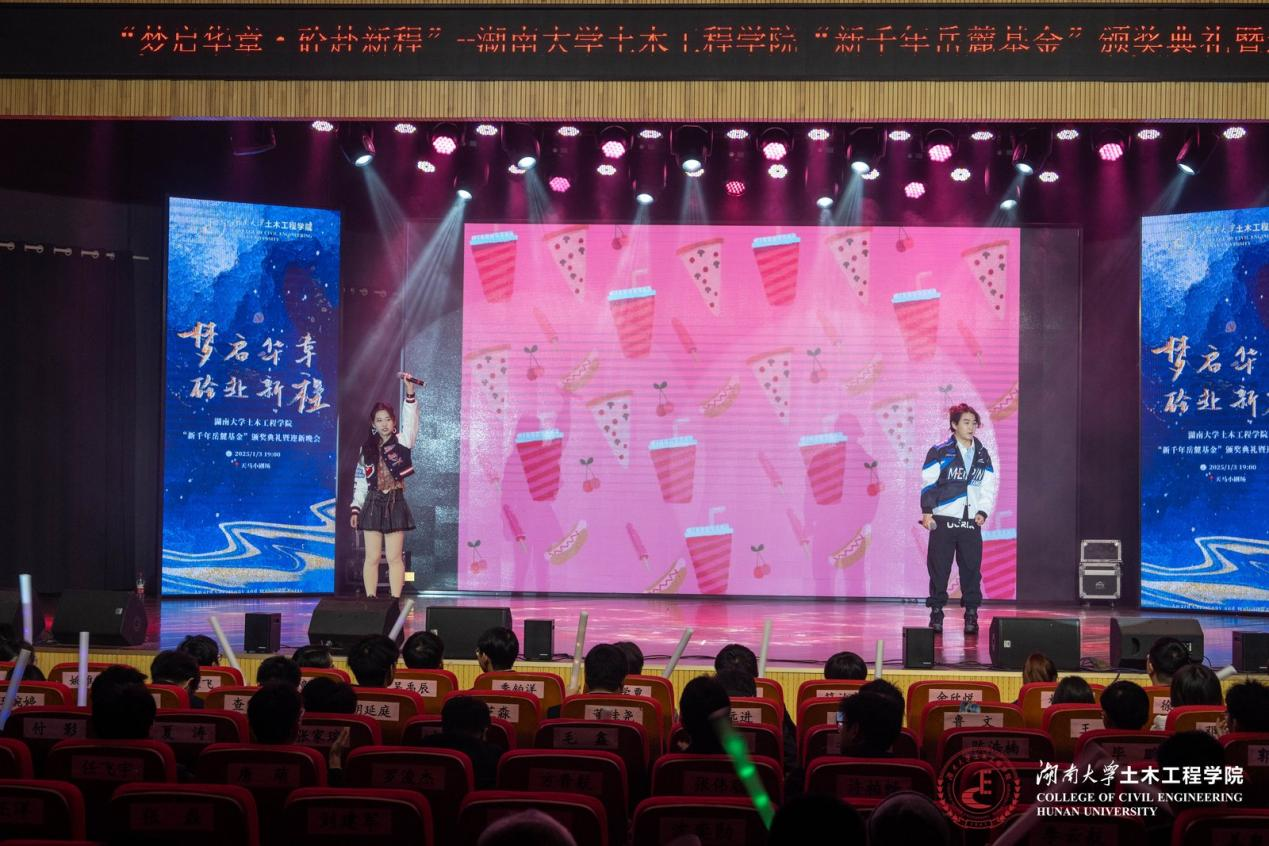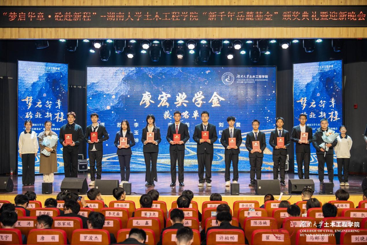 “梦启华章,砼赴新程——‘新千年岳麓基金’颁奖典礼暨迎新晚会”在天马小剧场举行,133名优秀学生个人、5个优秀寝室以及5个优秀班集体接受表彰。“新千年岳麓基金”由第一会所