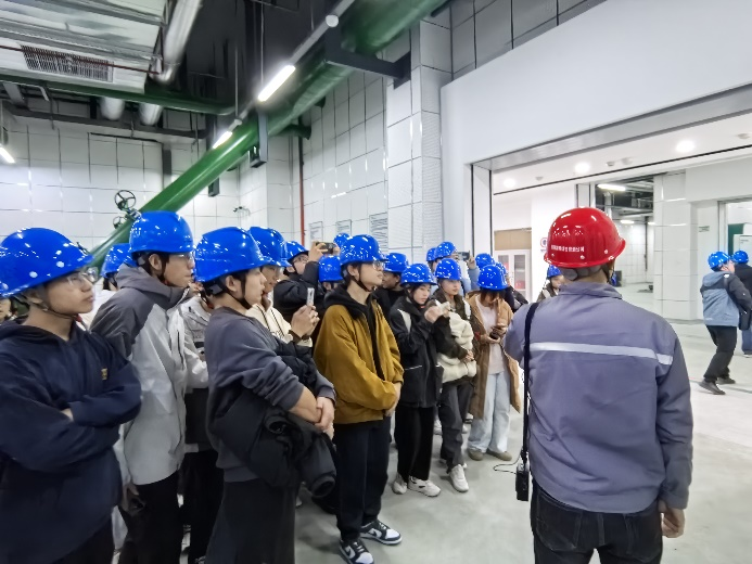 在中节能滨江能源站,带队老师向同学们阐述了水源热泵区域能源系统的工作原理和节能优势,工作人员带领同学们参观了能源系统机房并对主要设备进行讲解,让同学们深入了解了本专业在区域能源供应中的核心作用。