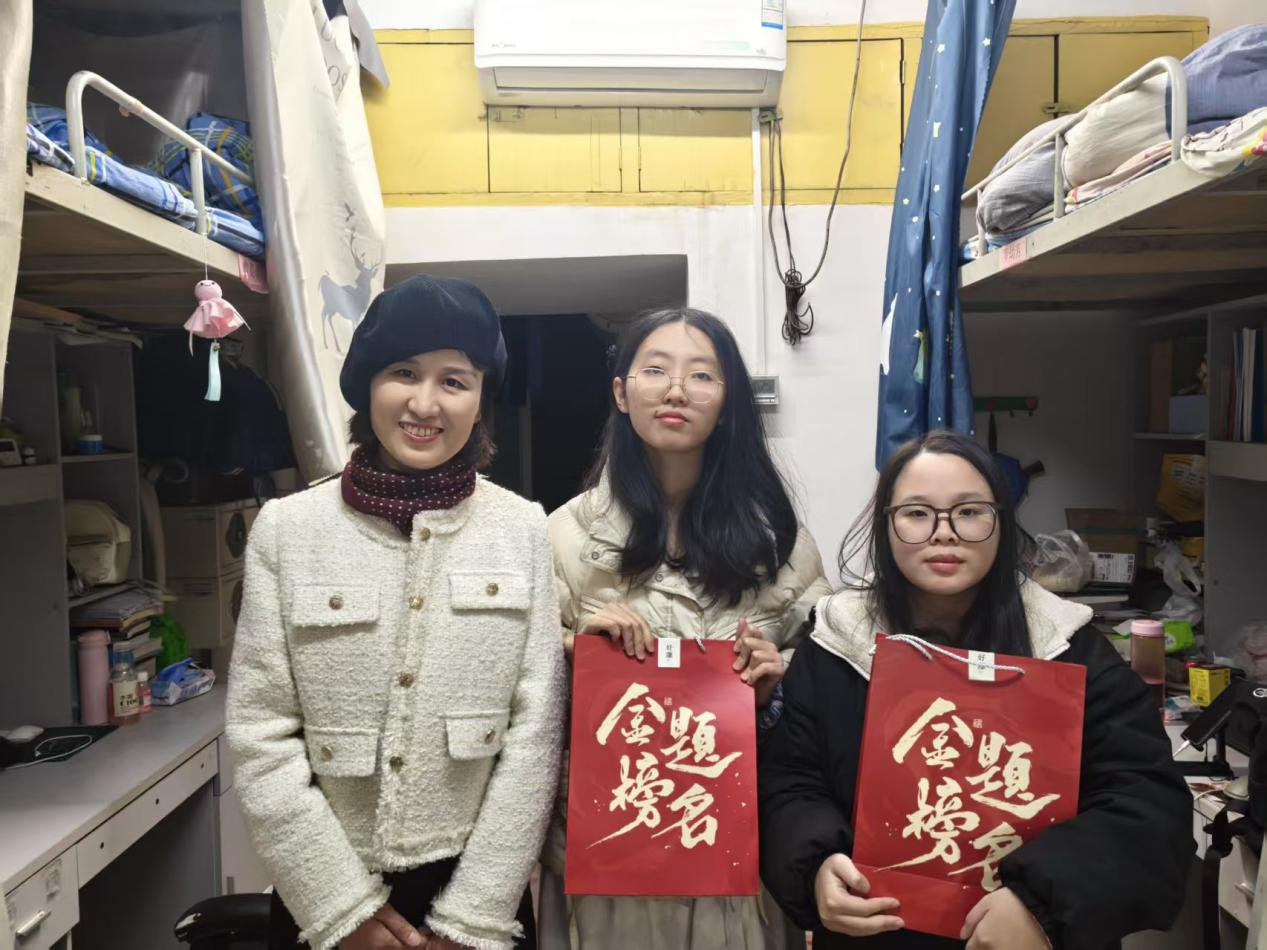 领导、辅导员及学生志愿者深入宿舍,为即将踏上考场的同学们送上暖心慰问与诚挚祝福。在宿舍里,老师们仔细询问大家的复习进度、备考状态及生活需求,耐心解答同学们在冲刺阶段遇到的学习困惑与心理压力。鼓励同学们调整心态、沉着应战,以扎实的专业积累和从容的应考状态奔赴考场,同时叮嘱大家注意劳逸结合,保持良好的身心状态。