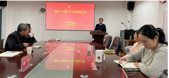 B211会议室进行了党的十九届六中全会精神宣讲学习。副书记彭晋卿进行宣讲,参加宣讲活动的还有研究生工作部副部长谭凤娥,会议由建环党支部书记龚光彩主持。