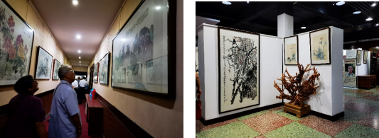 接着,湖南省真卿书画院党支部书记张振兴介绍书画院情况,并带领党员同志观摩“颂党恩、迎国庆”书画展。