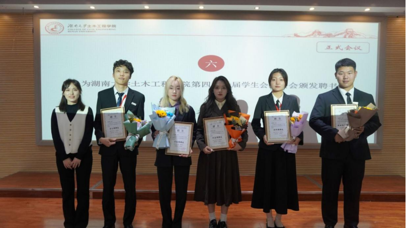 党委副书记曾欢欢老师、团委副书记丛珊珊老师为第四十一届学生会执行委员会委员颁发证书并合影留念。