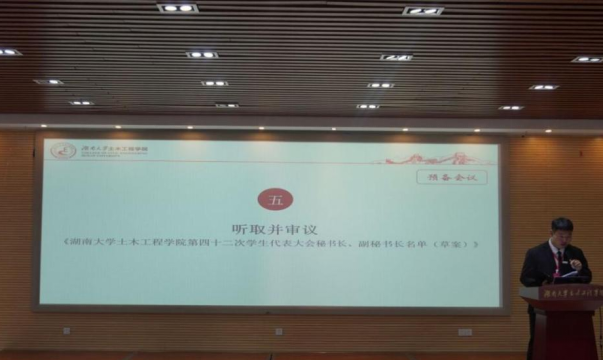 选举会议通过了《学生会主席团选举办法(草案)》《学生会主席团候选人名单(草案)》及《学生会主席团选举总监票人、监票人名单(草案)》三项文件,并宣读了《学生会主席团选举总票人、监票人名单(草案)》。四位主席团候选人依次登台进行个人风采展示。