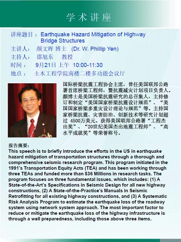 颜文晖:Earthquake Hazard Mitigation of Highway Bridge Structures