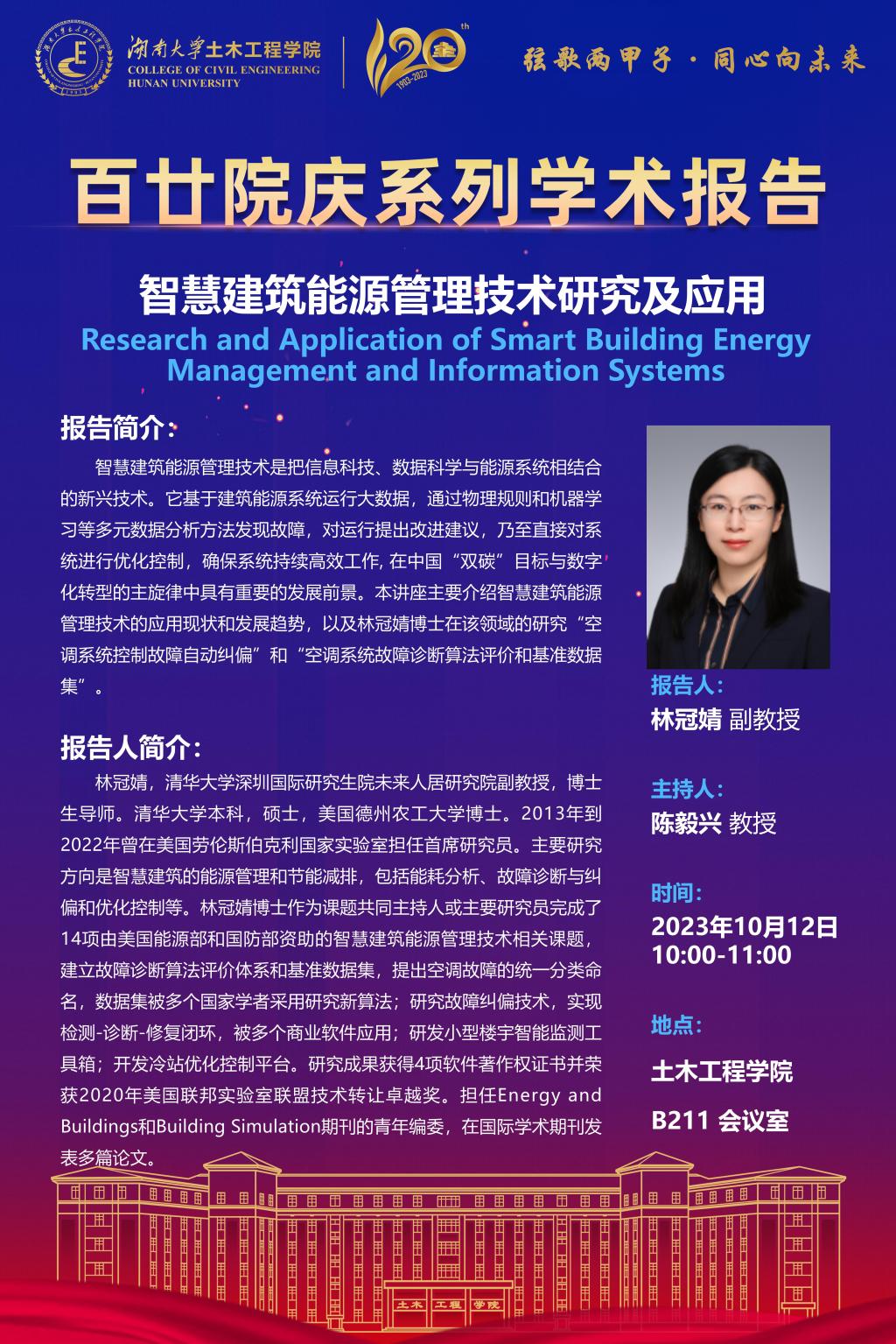 百廿院庆 学术活动|林冠婧:智慧建筑能源管理技术研究及应用