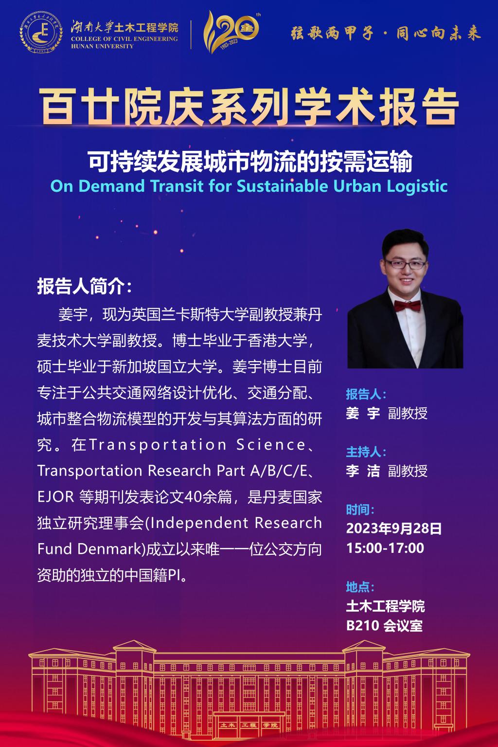 百廿院庆 学术活动|姜宇:可持续发展城市物流的按需运输