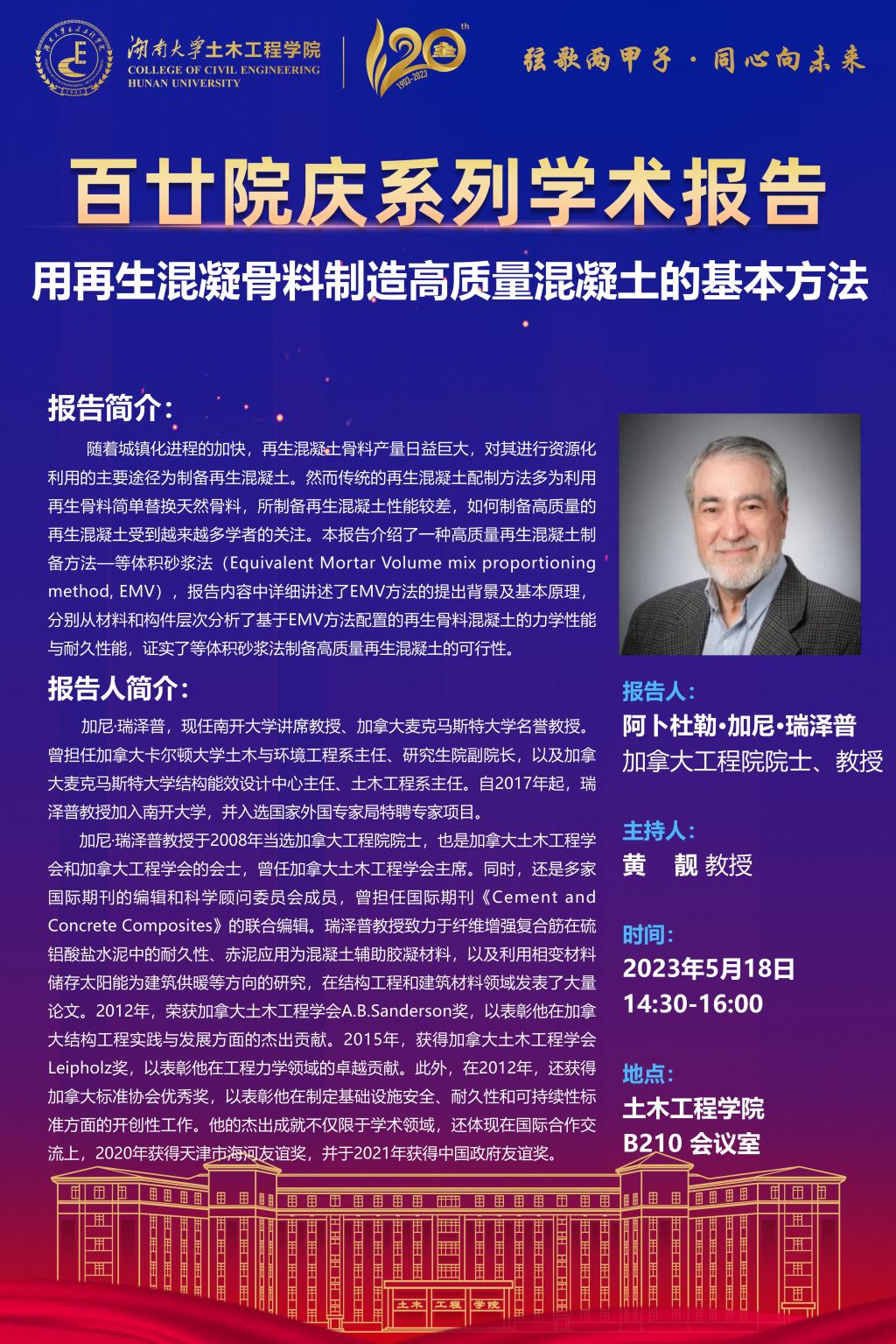 百廿院庆 学术活动|阿卜杜勒·加尼·瑞泽普:用再生混凝骨料制造高质量混凝土的基本方法