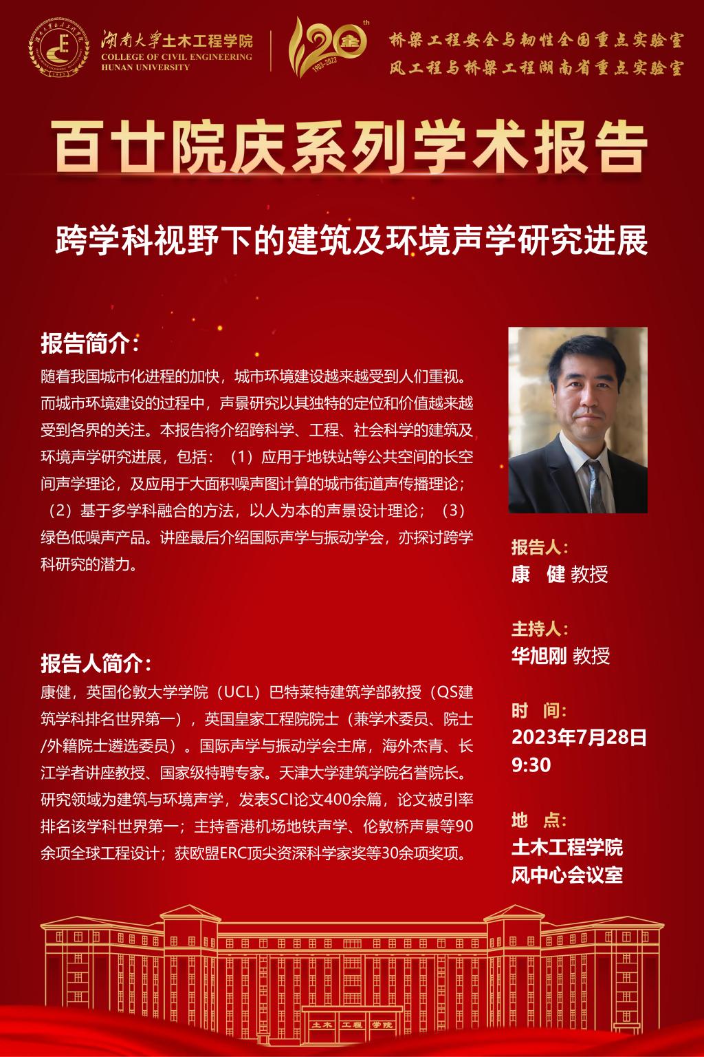 百廿院庆 学术报告|康健:跨学科视野下的建筑及环境声学研究进展