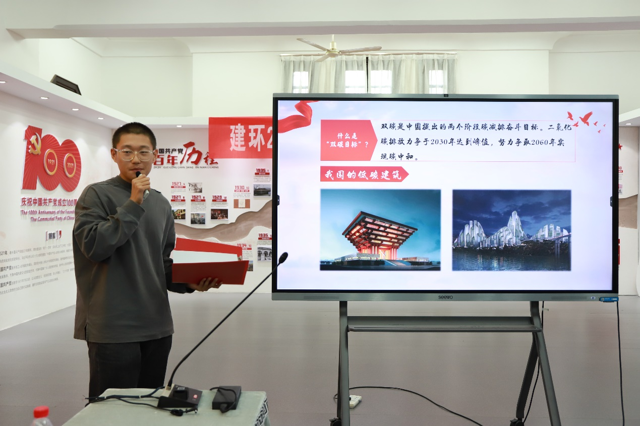 第二篇章:建设低碳城市,环抱绿色未来。通过视频《以专业之名——千年学府,智慧建环》,同学们对建筑环境与能源应用工程有了初步了解,积极探讨对建环专业的认识,各抒己见,氛围热烈。二十大以来,国家对双碳目标和科技人才培育提出新要求,班主任彭晋卿就低碳建筑实验班培养目标和专业前景进行指导,从实际生活出发,指出建环专业亟需攻克的难题,鼓励同学们领会二十大精神,未来投身建环事业,实现个人价值,为国家发展增光添彩。