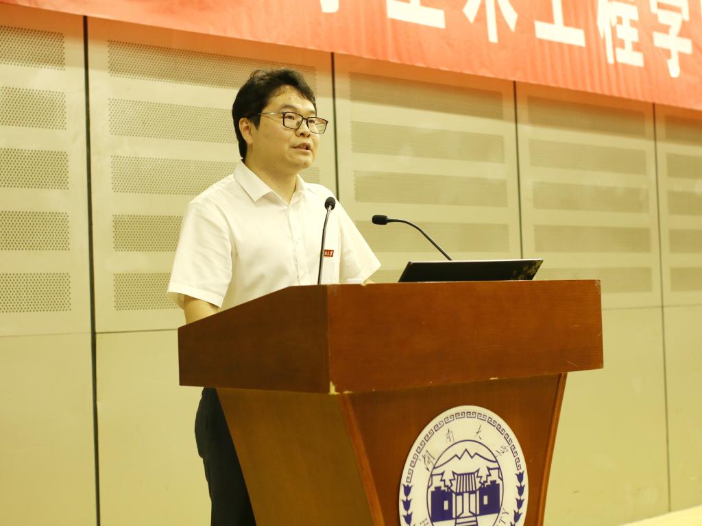 党委书记彭嘉芬向全体研究生新生表示了热烈欢迎,同时,从坚定理想信念、传承学术精神、坚守学术思想、不惧艰难险阻四个角度对同学们提出了殷切期许,希望同学们能够争做新时代土木人。