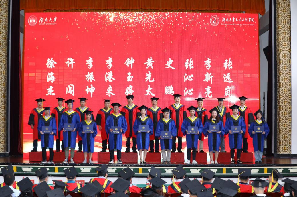 获得学士与硕士学位的毕业生名单。2020届、2021届毕业生们身着学位服,依次列队上台,由导师代表为其拨穗并颁发学位证书。