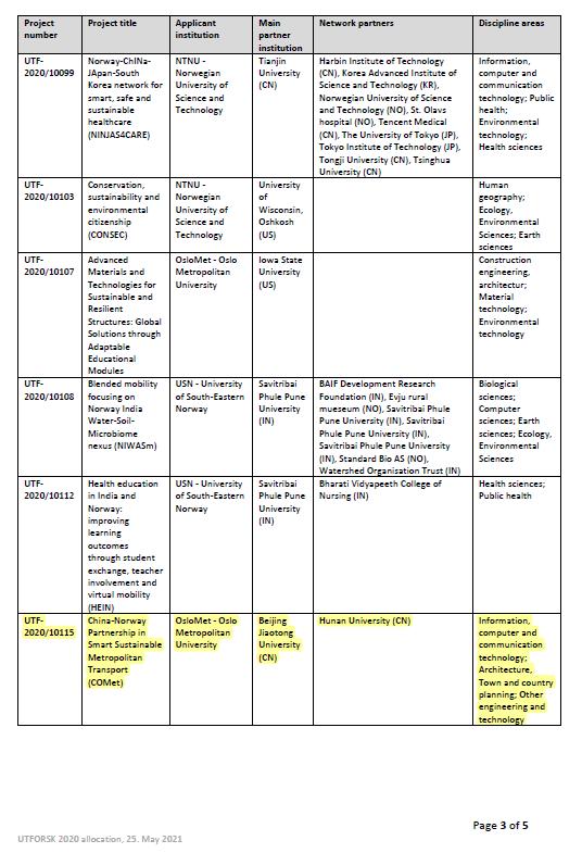 宋晓琳教授,与挪威奥斯陆城市大学(Oslo Metropolitan University, Oslomet)和北京交通大学合作申请的UTFORSK项目“中国-挪威智慧可持续都市交通”(China-Norway Partnership in Smart Sustainable Metropolitan Transport (COMet)项目正式获批。