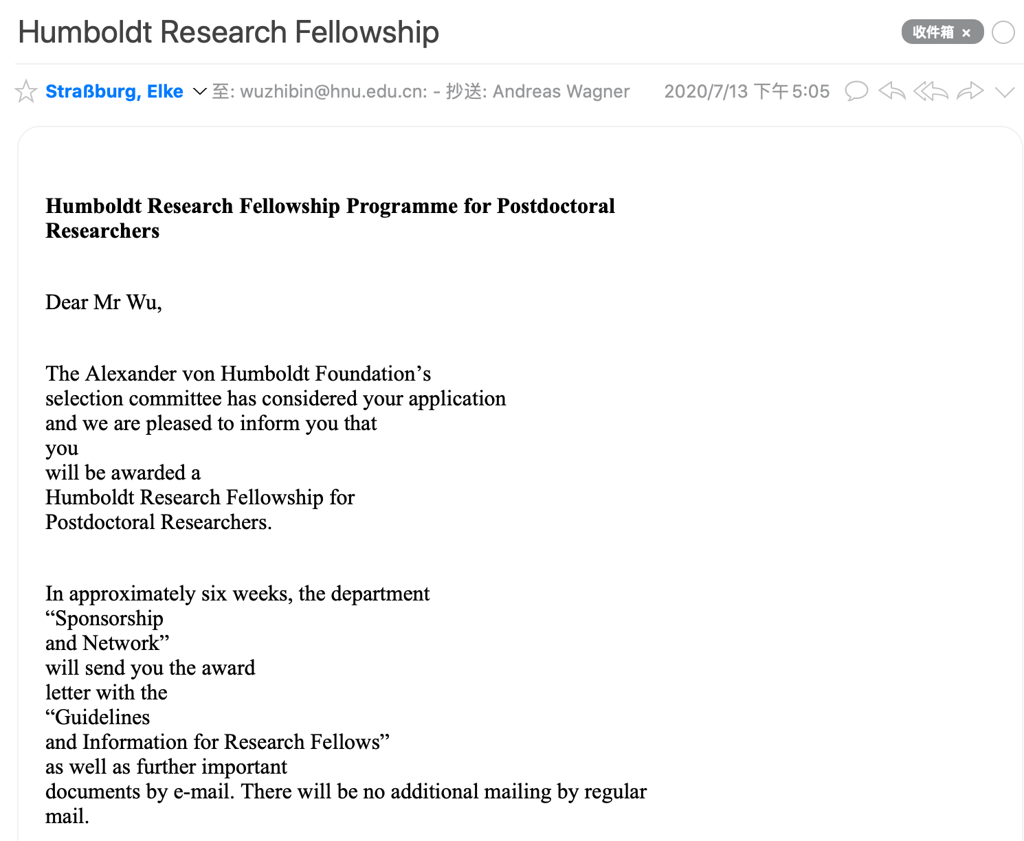 李念平教授团队伍志斌博士获得“德国洪堡研究基金”资助(Humboldt Research Fellowship for Postdoctoral Researchers),成为年轻的“洪堡学者”之一。合作教授是德国卡尔斯鲁厄理工第一会所
