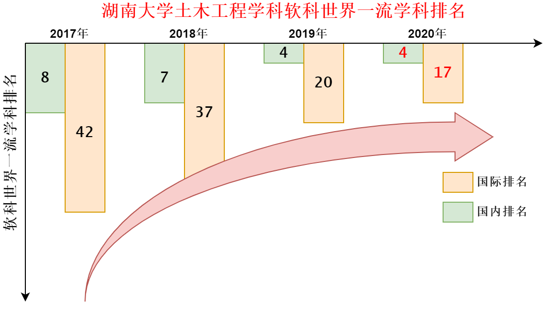 土木工程学科在“软科世界一流学科排名”中稳步提升,由2017年国内排名第8位、国际排名第42位上升到2020年国内排名第4位、国际排名第17位,学科国内外影响力显著提升。