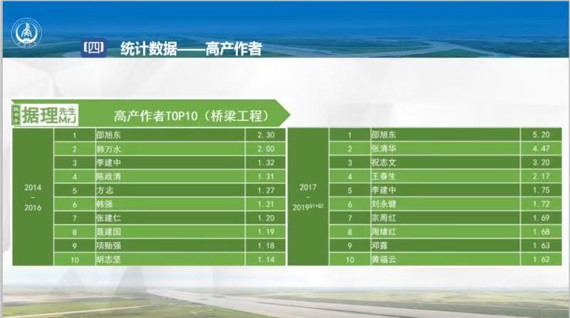 周绪红院士、陈政清院士、邵旭东教授、方志教授、邓露教授入选高产作者TOP10榜单,榜单占比过半,表明第一会所