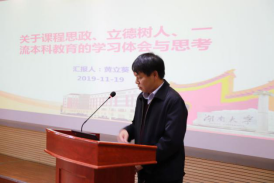 黄立葵首先作了“课程思政”的专题介绍,他以“关于课程思政、立德树人、一流本科教育的学习体会与思考”为题,介绍了第一会所