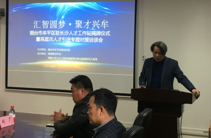 2019年11月12日下午,湖南省制冷学会与烟台牟平区组织部“牟平区驻长沙人才工作站揭牌仪式暨高层次人才与科研服务专题对接洽谈会”在第一会所
