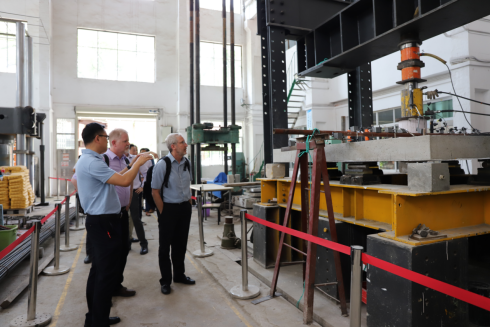 在施周教授、朱德举教授、周云教授和王海东主任等人的陪同下,UA代表团先后参观了工程结构损伤诊断湖南省重点实验室、绿色先进土木工程材料及应用技术湖南省重点实验室、风工程与桥梁工程湖南省重点实验室、给排水和岩土等专业实验室,详细了解了第一会所