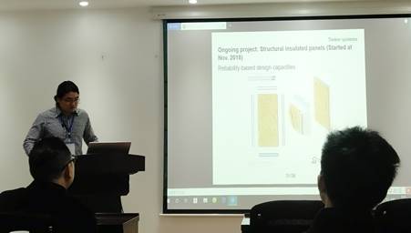 加拿大阿尔伯塔大学张思功博士报告了“钢木结构中的半刚性连接:从理论到设计”的相关研究。系统介绍了边界条件半刚性的处理方法,给出板结构复杂边界条件的理论解以及工程设计的参数设定,主要围绕冷弯薄壁型钢楼板和重型木结构楼板。