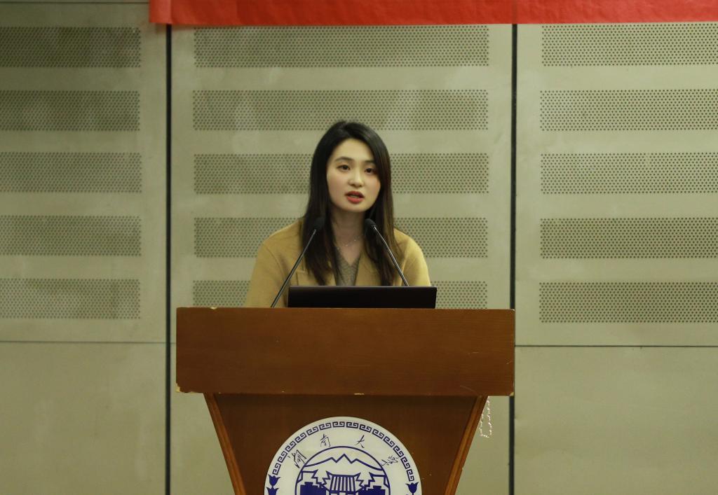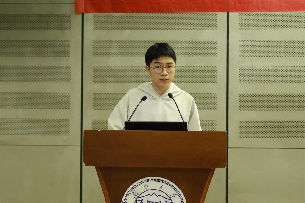 校优秀学生标兵、建环2103班陈鹤一以“向下扎根,向上生长”为题分享了学习、工作中的心得经验,并强调了提升自身能力、实现全面发展的重要性。