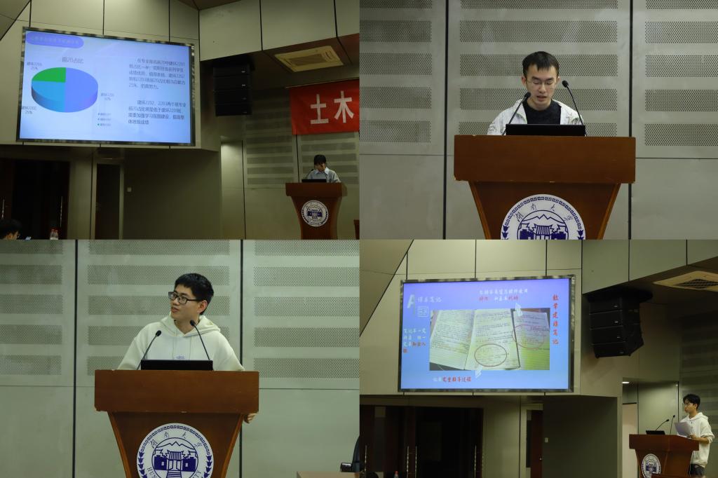 在会议上,学生干部进行了学习成绩分析,指出了各班级存在的有关问题,提出了具体解决措施。建环2201班学习委员高雨桐、土木2202班学习委员张伟聪分享了班级学风建设经验和个人学习心得。