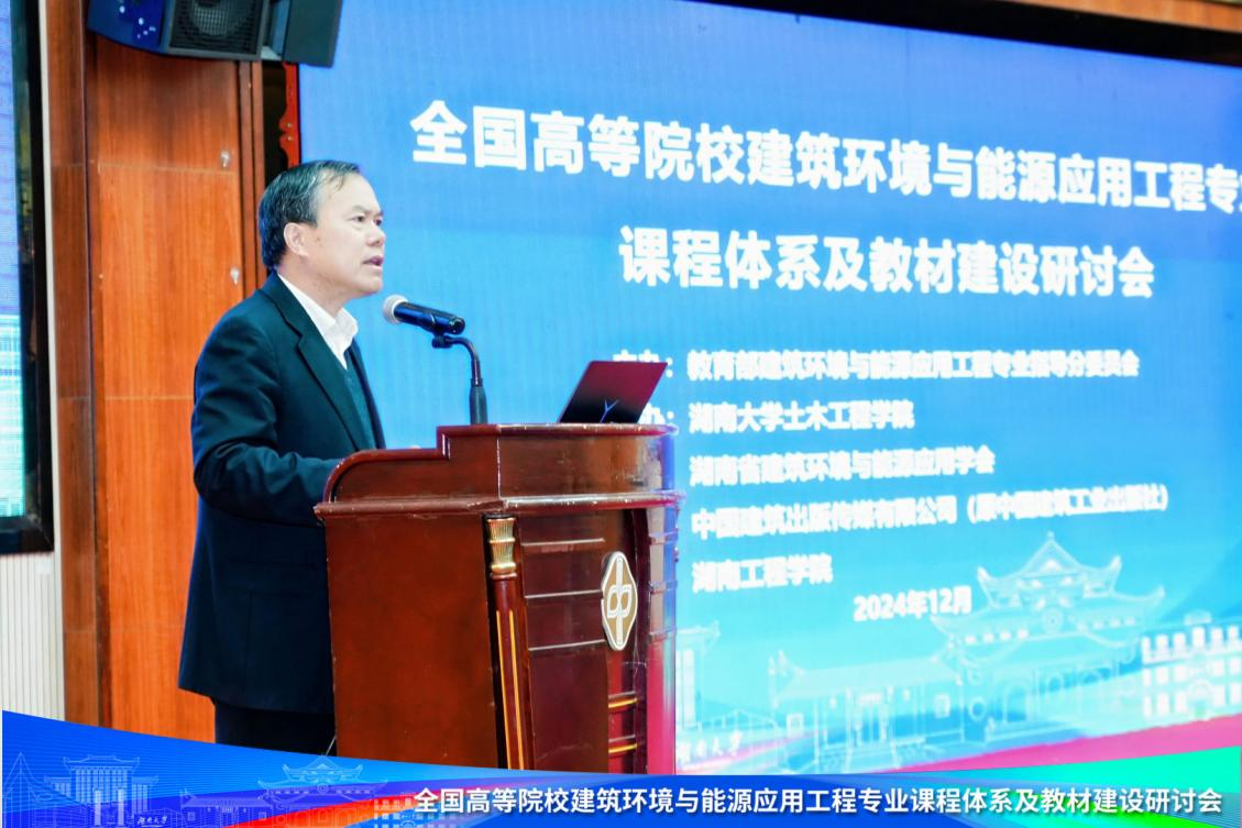 、湖南省建筑环境与能源应用学会承办,中国建筑出版传媒有限公司(原中国建筑工业出版社)等单位协办。建筑环境与能源应用工程专业教学指导分委员会(以下简称“建环教指委”)主任委员、清华大学教授朱颖心,建环教指委副主任委员、中南林业科技大学教授王汉青,建环教指委副主任委员、天津大学教授张欢,建环教指委委员、秘书长、评估(认证)委主任清华大学教授李先庭,建环教指委委员、评估(认证)委委员20余人,以及来自全国各高校的建环专业负责人、教师代表共计350余人参加了此次研讨会。第一会所