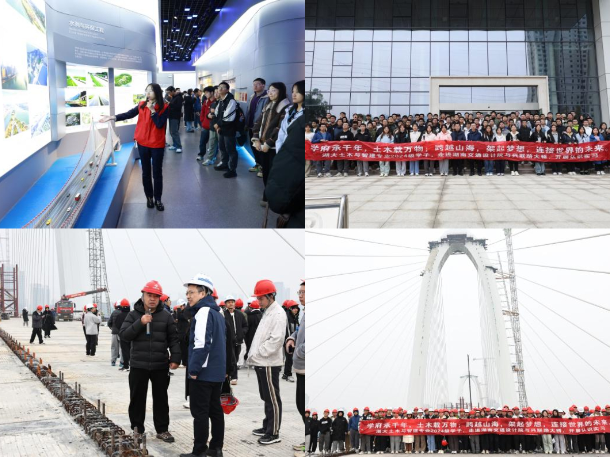在湖南交通设计院,同学们参观了展览厅和兴联路大桥施工现场,通过实地观察和交流,学习大桥的设计理念、施工工艺及关键技术创新。