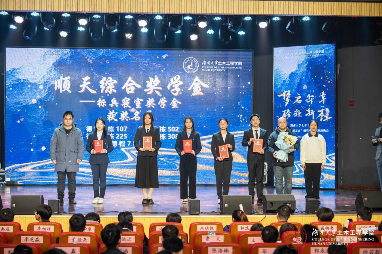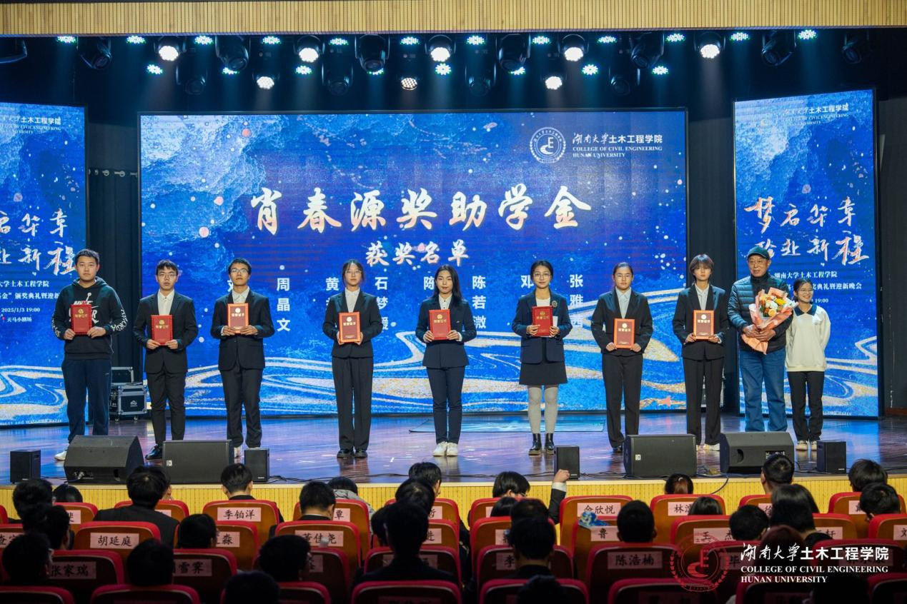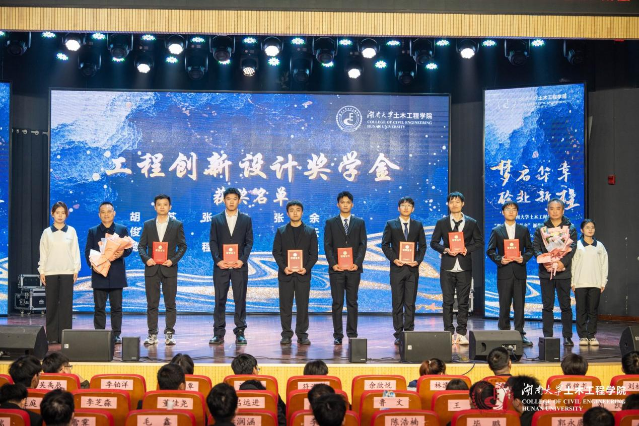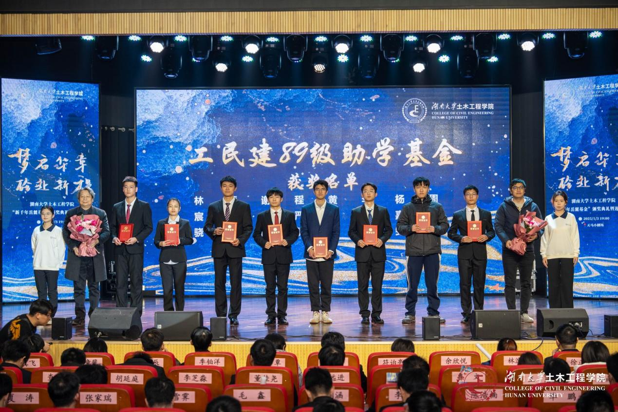 设计院总经理罗敏、88级校友、总工程师郭健,“杨运传奖助学金”代表、横琴粤澳深度合作区原礼宾接待处处长杨俊生,“皓芬奖学金”代表、95级校友、皓芬基金会理事方兴、20级校友刘昕、陈雅旎,“2004级奖学金”代表、04级校友、湖南智文环境工程有限公司总经理郑登高,“九二级交通土建专业校友奖学金”代表、92级校友、第一会所