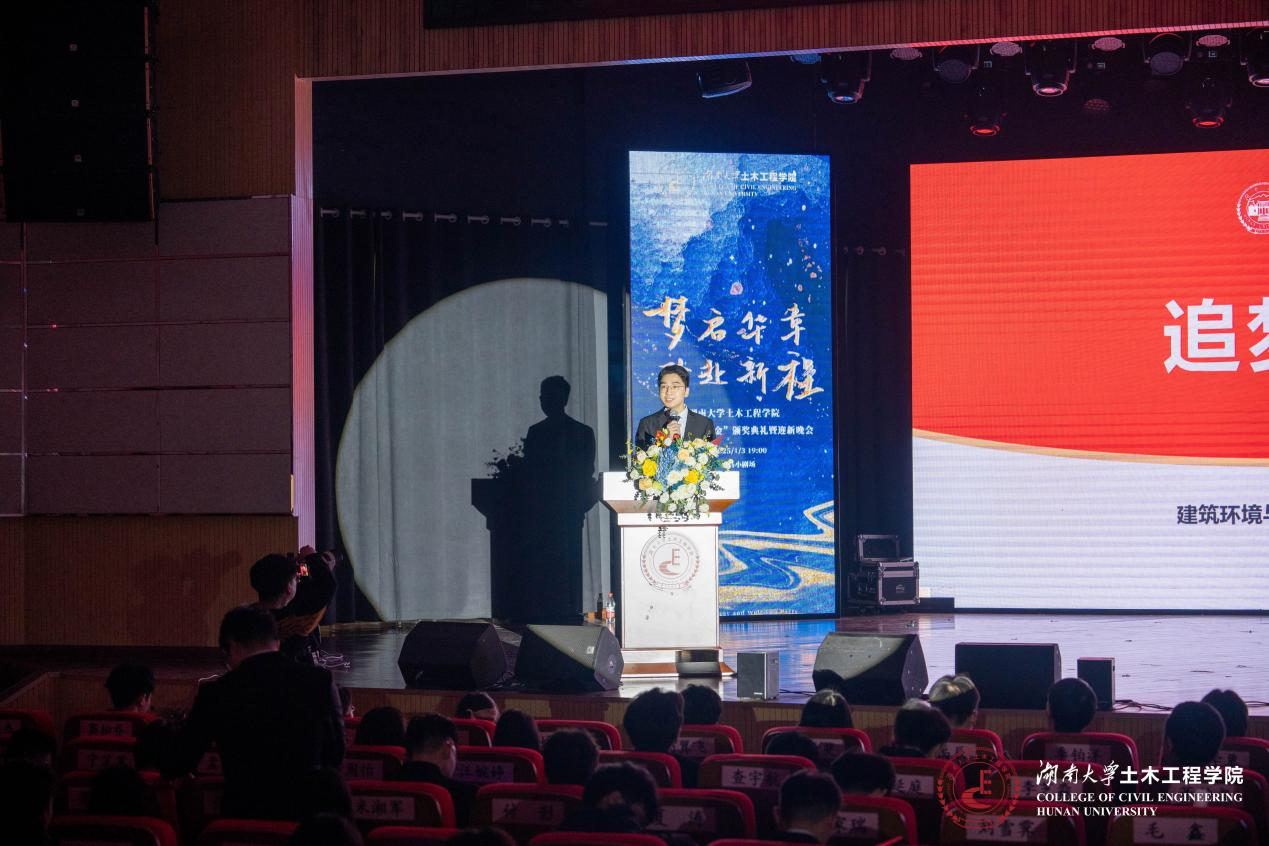 土木人在未来机遇与挑战并存的浪潮中勇立潮头。“2004 级奖学金”获得者、本科生代表陈鹤一以“追梦青春”为题讲述大学成长故事,顺天综合奖学金”获得者、研究生代表张吉仁分享科研路上与 “风” 较量的历程,他们的故事激励大家脚踏实地、厚积薄发,争做时代 “驭风者”。