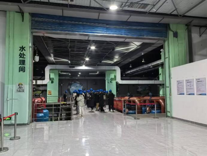 在中节能滨江能源站,带队老师向同学们阐述了水源热泵区域能源系统的工作原理和节能优势,工作人员带领同学们参观了能源系统机房并对主要设备进行讲解,让同学们深入了解了本专业在区域能源供应中的核心作用。