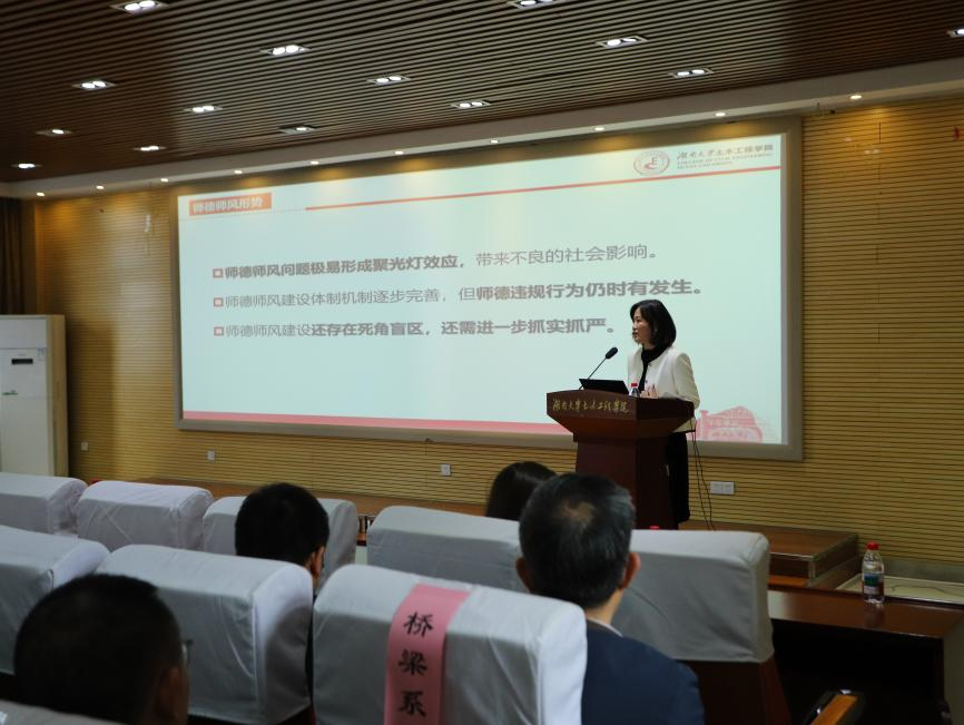 正处级组织员程华带领全院教职工进行了师德师风专题学习,结合师德失范反面案例,深入解读新时代高校教师职业行为十项准则的内涵要义。